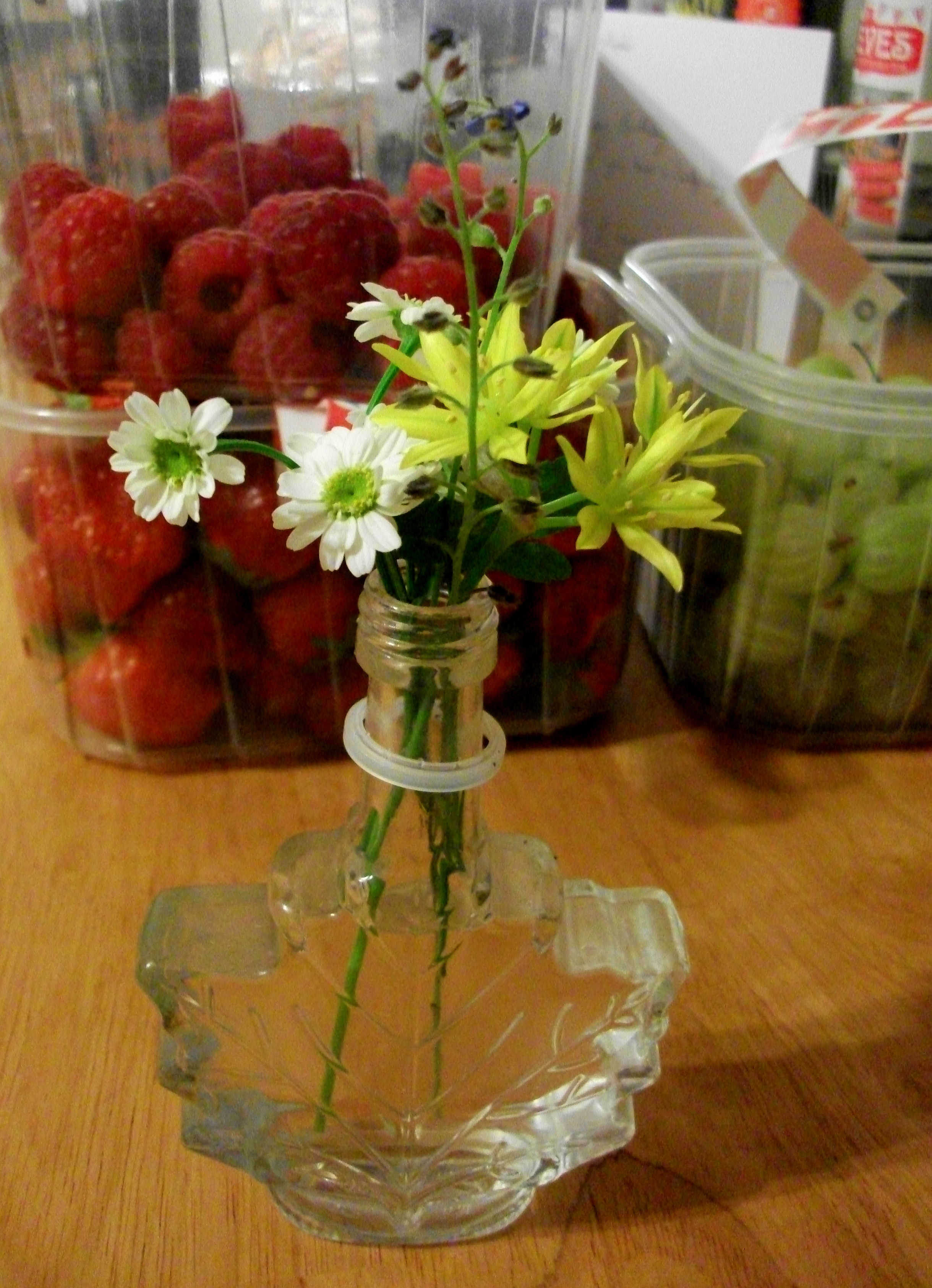 For a simple story I thought I would make a simple little cake. The one in the picture appears to be some kind of bundt cake, but I thought one that took advantage of seasonal fruit might be nice. A buckle is an old-fashioned cake/pudding which often has a streusel topping, but I just used a Victoria sponge mix.