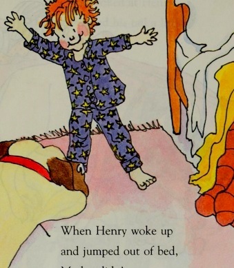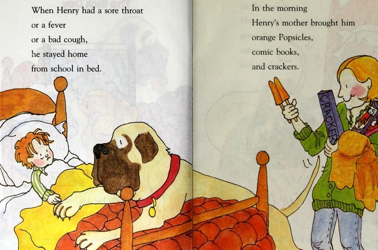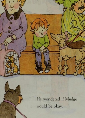 This book is a good read for a wintry day. The illustrations are fluid and charming. Sadly, we have not got a single flake of snow here this year, and I enjoyed looking at the pictures of the snow. If you are lucky enough to have snow, and have some time off, then light the fire, make some soup, muffins, and tea, get cozy, and watch the flakes fall. Still, even if we can’t spend the day in bed, minty tea and adventure books are something almost any of us can enjoy, at home or even during lunch at work. Another book by the same author on a similar theme is Henry and Mudge get the Cold Shivers: The Seventh Book of Their Adventures. Instead of a man and his cat, this series is about a boy and his dog. It has three short chapters and is similar in style and tone. Henry’s big dog Mudge likes it when Henry has a sick day and gets to stay home in bed. Nobody thinks Mudge can get sick, but one day he does, and he has to go to the vet. Henry is worried about Mudge, and the pages where he is sitting in the waiting room are actually quite sad.