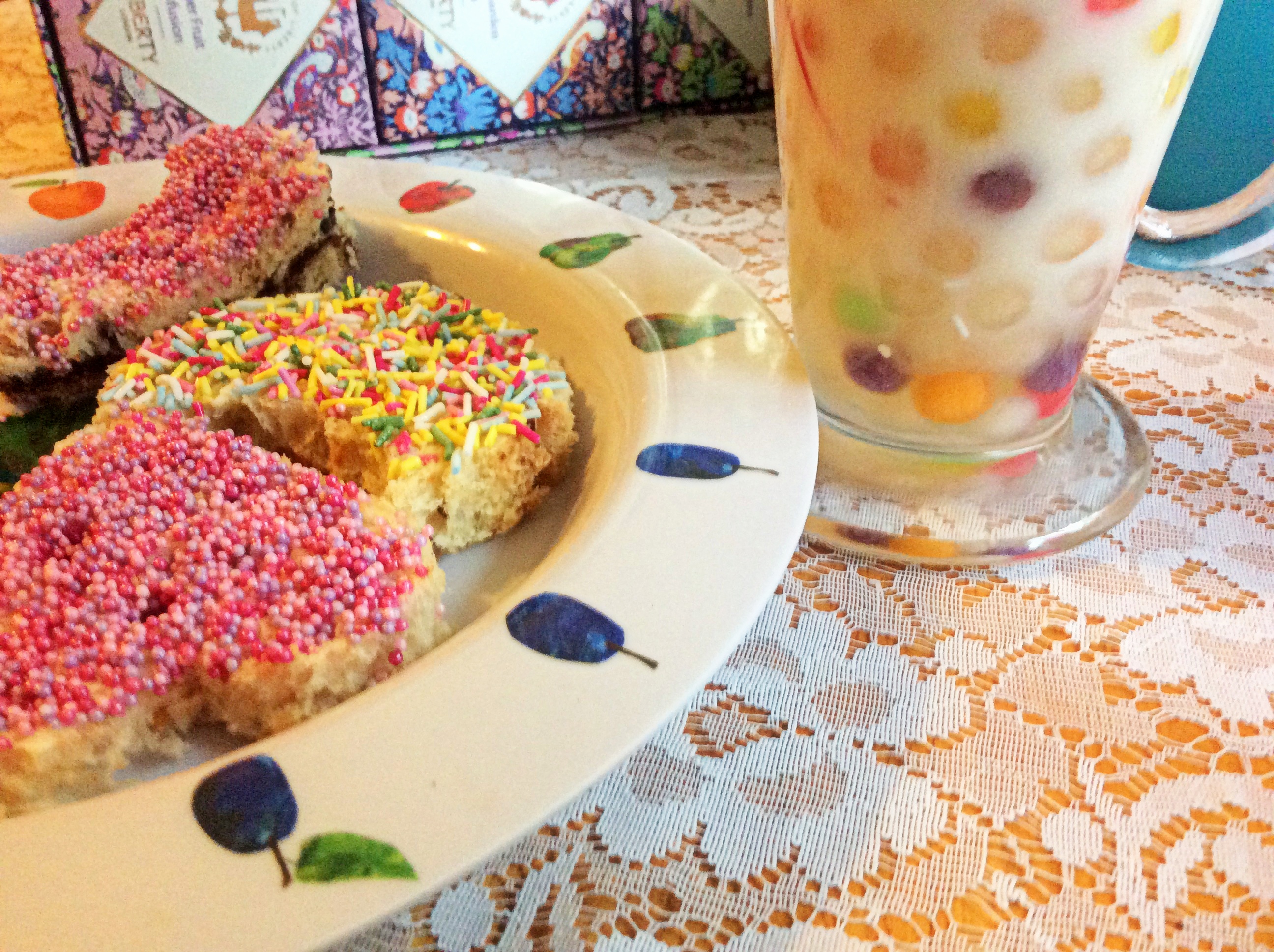 And if it is cold outside I think it is perfectly fine to have a Summer Party inside! I was inspired by the cousins’ menu but made a few changes. I didn’t make the little vegetable people, although that would be fun, particularly with children. To make the cookie cutter sandwiches even prettier, I made fairy bread. For anyone unfamiliar, fairy bread is just bread with sprinkles on top. I made some the usual way (as in just one slice), and some as sandwiches with the sprinkles then added to the top. Cookie Cutter Fairy Bread Sandwiches