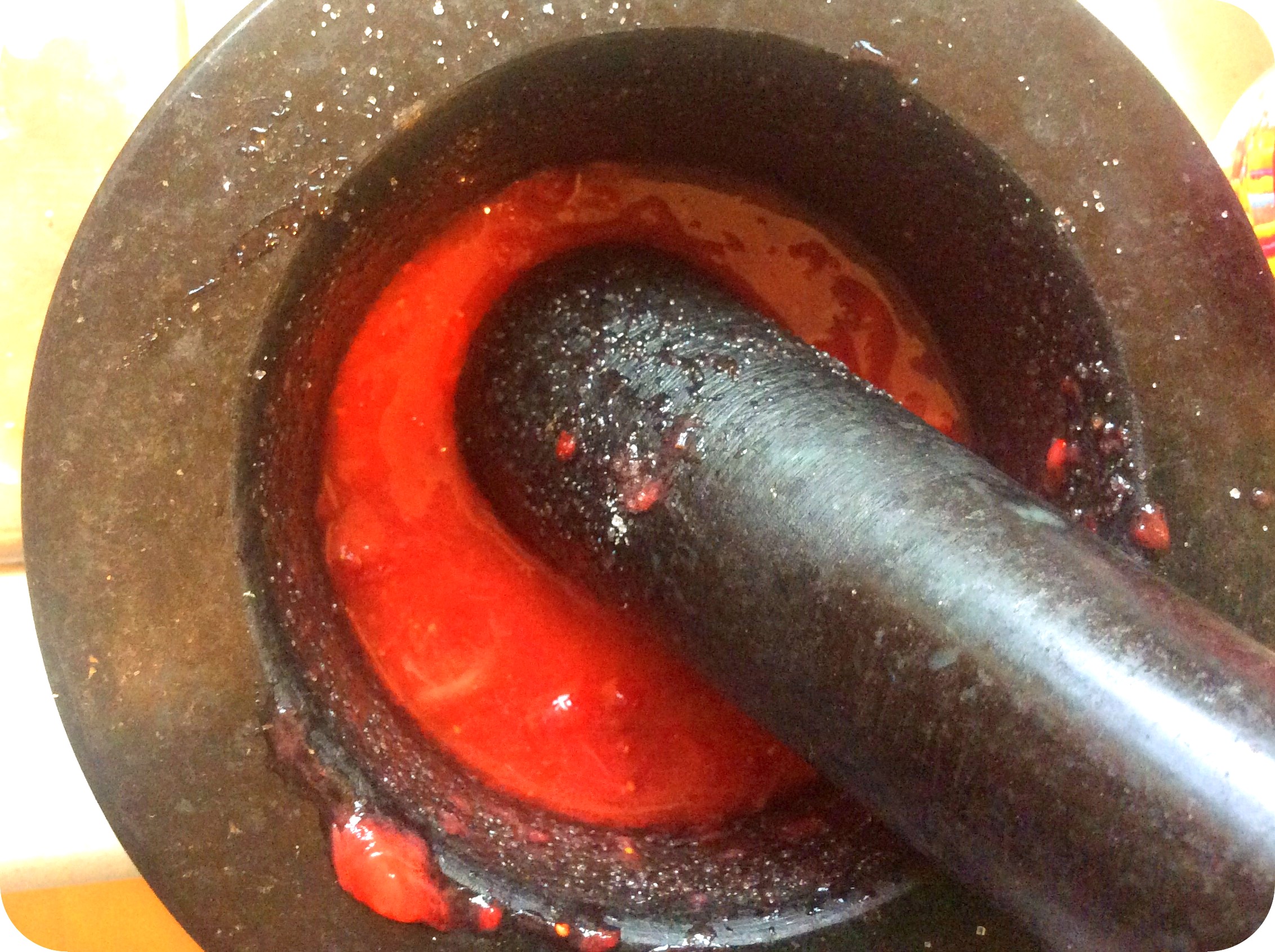 And lastly, the pink lemonade. I used this recipe from last Summer, but I added 1 1/2 cups pureed strawberries. You can use a blender, but if the strawberries are ripe you can also use a mortar and pestle. I personally like to have a little strawberry pulp in there. The only thing to remember is that you might need less sugar if the strawberries are very sweet.